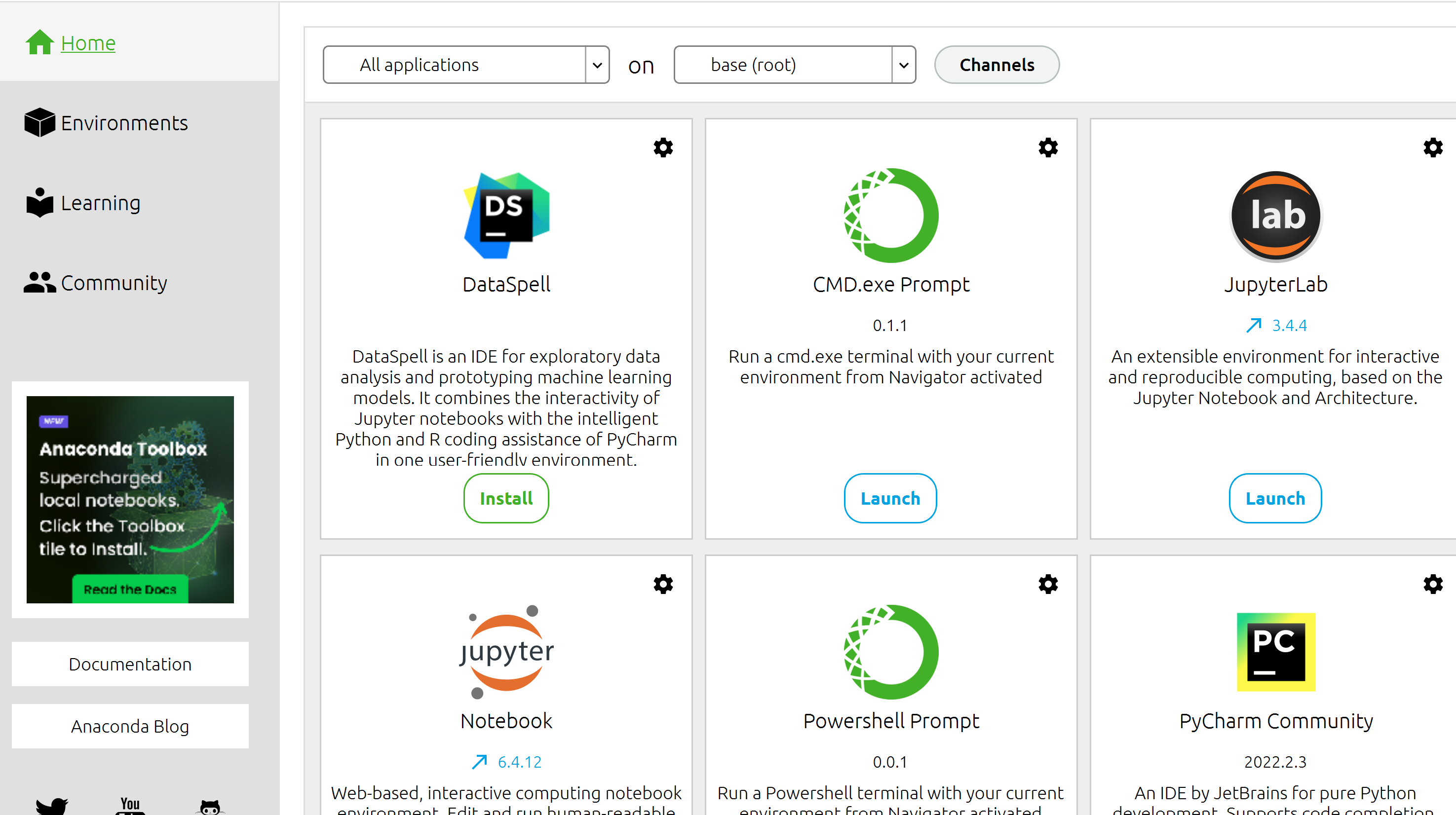 Search Anaconda Navigator in your Windows Search Box. Once you click on the application the Anaconda’s dashboard will open.
