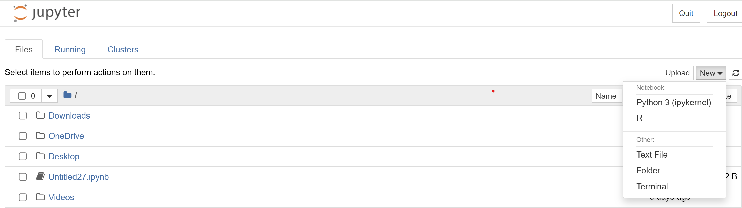 The top right corner of Jupyter Notebook’s own dashboard houses a New button, you have to click to open a new document. From the dropdown that has several options click on Python 3.