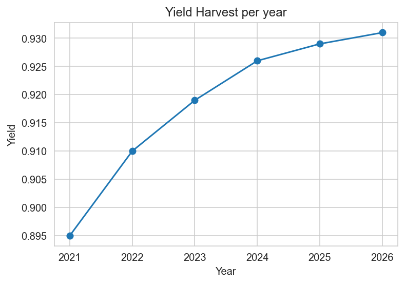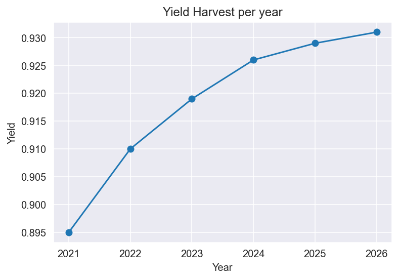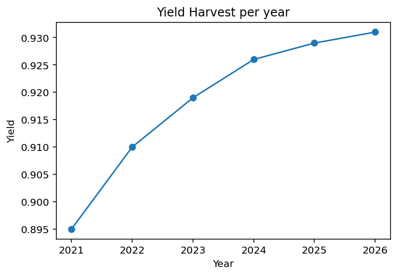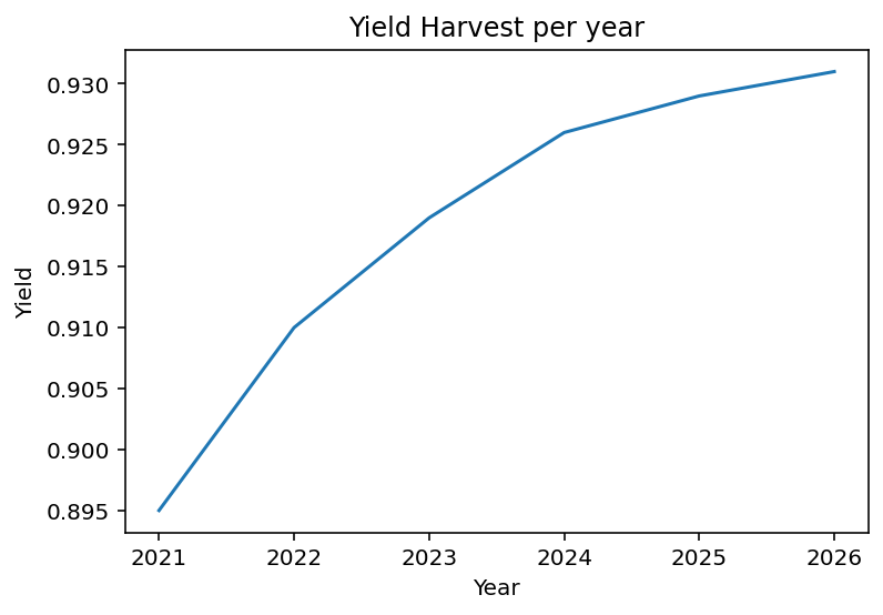 Text(0.5, 1.0, 'Yield Harvest per year')